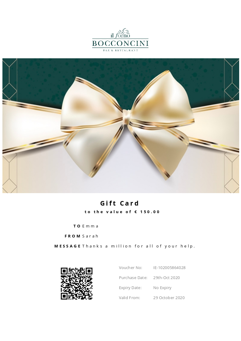 Il Forno allows you to purchase instantly printable gift vouchers, special offers and tickets using the Voucher Connect platform.